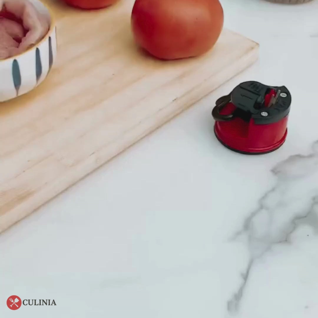 Last van botte messen tijdens het koken? Met de Culinia® Messenslijper maak je jouw messen opnieuw vlijmscherp in enkele seconden – veilig, simpel en voor iedereen. Geen frustratie meer, maar weer moeiteloos snijden.